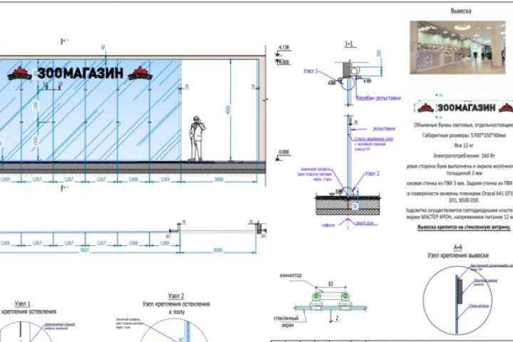 Альбом чертежей раздела АР рабочей документации помещения магазина в ТЦ. Объект реализован 2019 г, авторский надзор, согласование с администрацией торгового центра.
