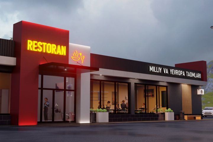 Ресторан расположен в горах. Ресторан будет построен на шоссе между горами и будет обслуживать пассажиров и водителей.