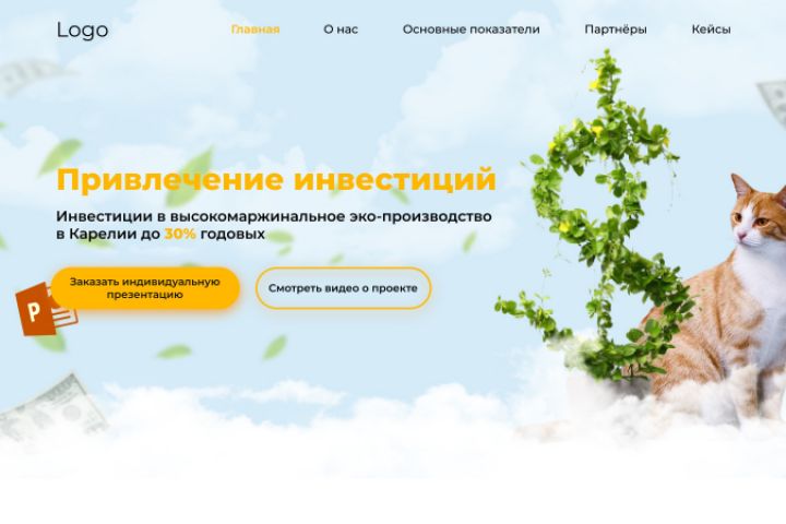 Главная страница сайта для привлечения инвестиций в производство кошачьего наполнителя