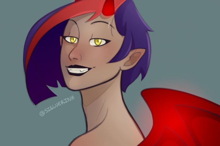 2д портретная иллюстрация на простом фоне с полноценным покрасом. Персонаж - Кабале из мультсериала "Друзья ангелов". Стиль авторский.