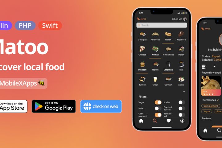Matoo is a restaurant marketplace web-service for admin and mobile multiplatform application for clients developed by MobileXApps. This app provides users with a convenient way to discover and order food from local restaurants.