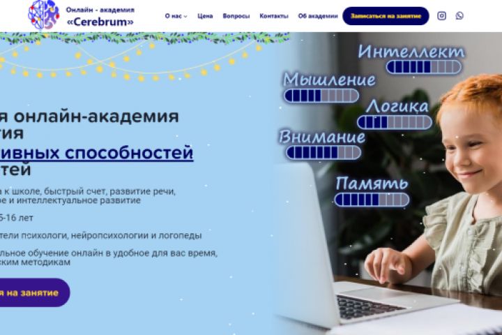 Продающий сайт онлайн академии Cerebrum. Создан с 0 и продолжаю вести и дорабатывать