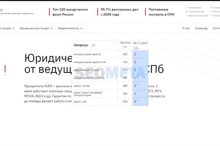 Мы продвинули сайт юридической компании с использованием различных методов, включая поведенческие факторы. Мы оптимизировали структуру и контент сайта, улучшили его скорость и мобильную адаптацию. Для привлечения целевой аудитории использовали качественные тексты, а также применяли поведенческие методы, такие как улучшение пользовательского интерфейса и опыта. Мы анализировали поведение посетителей и на основе этих данных корректировали контент и навигацию, чтобы повысить вовлеченность и снизить показатель отказов. Эти действия позволили значительно увеличить трафик и количество обращений на сайт.