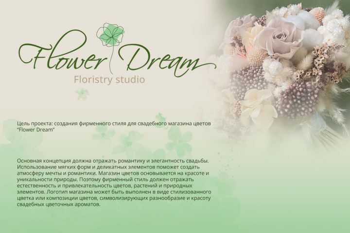 Основная концепция создания фирменного стиля для свадебного магазина цветов “Flower Dream”( "Цветочные мечты" )