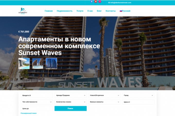 Сайт создан на WordPress, мультиязычный, с возможностью выбора русского, английского и испанского языков. Специализация на продаже недвижимости в Испании. Добавлены созданный специально для этого сайта плагин для быстрой печати и генерации QR-кода.