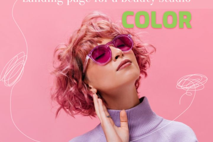 Люндинг для салона красоты с графическими элементами, имитирующими запутанные волосы и рассыпанную пудру