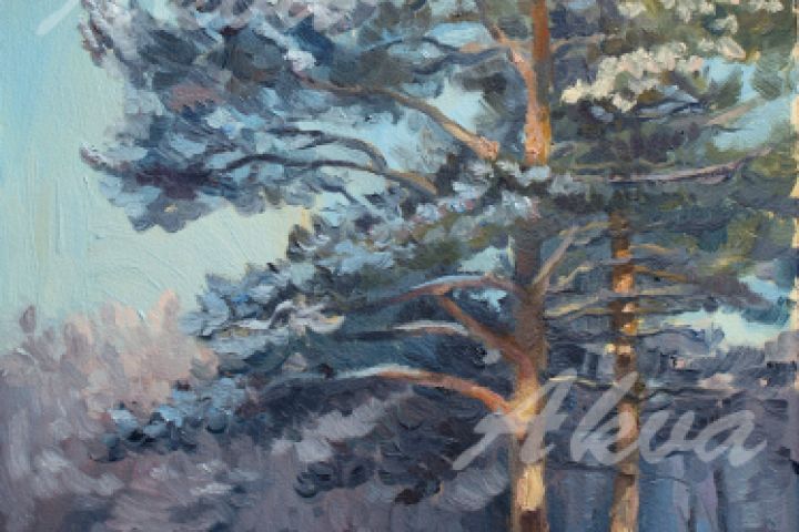 Зимний пейзаж, традиционная техника, масло, оргалит 30х40 см