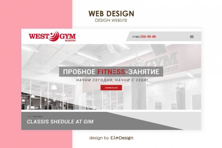 Редизайн первого экрана по запросу фитнес-центра. Пожелания были сохранить фирменный стиль (цвета: красный, белый, серый) и обновить дизайн.