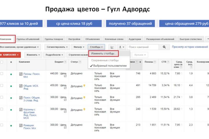 Продажа цветов - Яндекс Директ