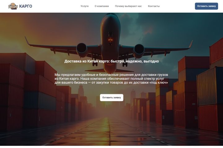 Сайт-визитка для компании, занимающейся доставкой грузов из Китая.