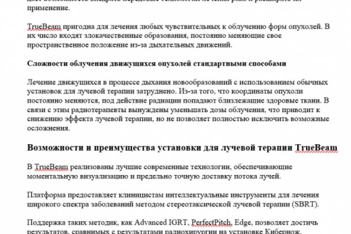 Полный текст доступен на странице https://rakanet.ru/metodi-lecheniya/truebeam/ Мною подготовлен еще ряд текстов для этого сайта
