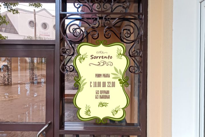 Подготовить макет "Режим работы" для дальнейшего производства и размещения на входной группе в здание кафе.