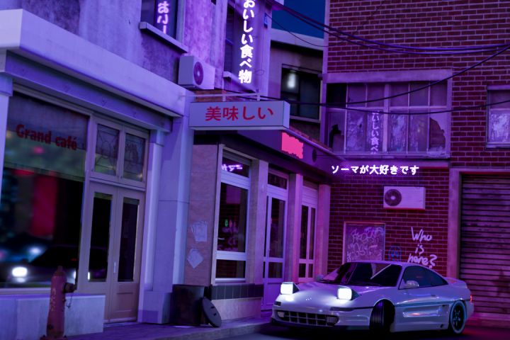 Захотелось сделать что-то в подобном неоновом, японском стиле. На работу потрачено 4 часа все окружение кроме машины сделано мною( в том числе материалы на машине).