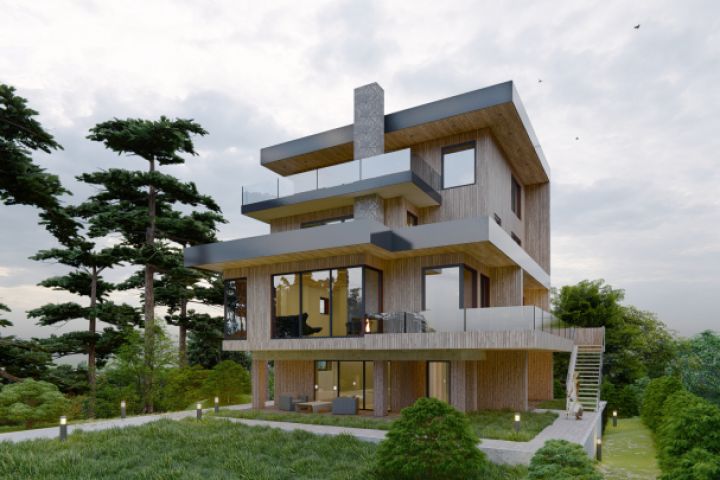 Дом на 4 этажа в террасами на каждом.