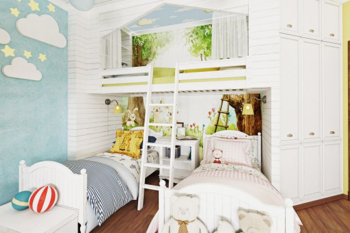 Уютный уголок для 2х разнополых детишек с имитацией домика на дереве