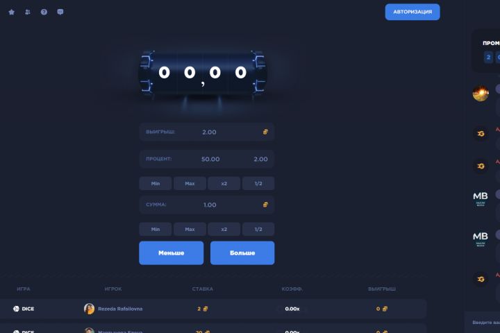 Разработка dice для сайта goldwin.