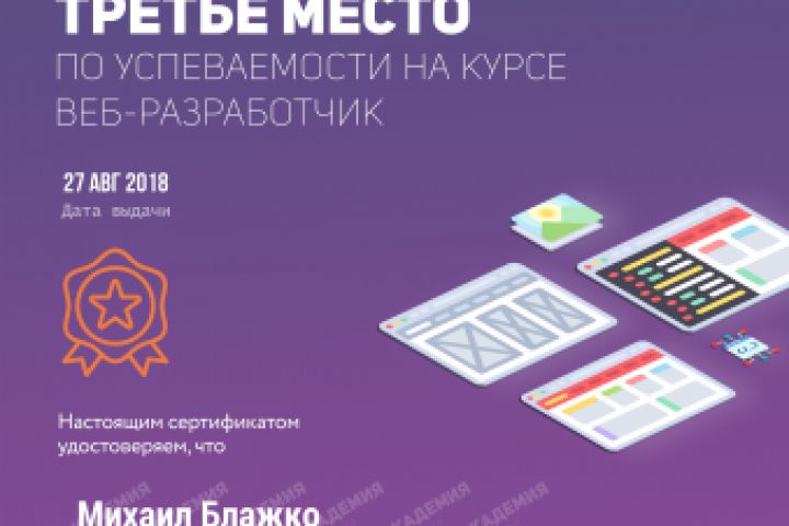 Сертификат за 3 место на курсе " Веб разработчик"