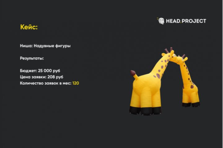 Результаты: Бюджет: 25 000 руб Цена заявки: 208 руб Количество заявок в мес: 120