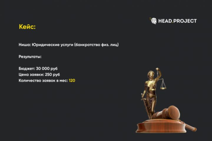 Результаты: Бюджет: 30 000 руб Цена заявки: 250 руб Количество заявок в мес: 120