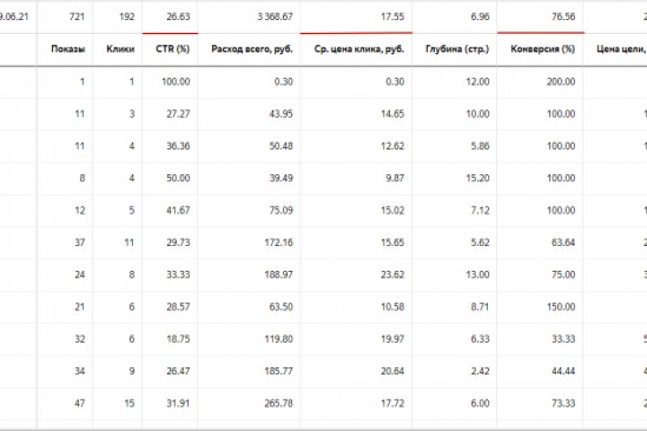 Реклама в Яндексе на сайт доставки еды. Статистика за месяц