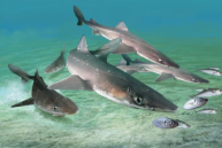 Катран, или колючая акула (Squalus acanthias, Linnaeus, 1758), PS, планшет, рисунок-иллюстрация для научно-популярной книги.