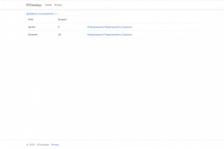 Пример работы с .Net, C#, Razor pages