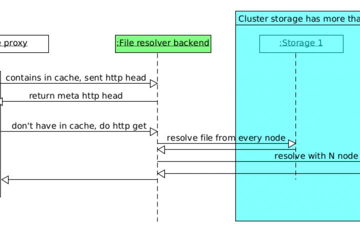 Необходимо было построить хранилище для файлов с горизонтальным масштабированием, при этом снизить нагрузку за счёт clodflare cache. В результе текущая система держит нагрузку 3 гигабайта в секунду и может увеличить нагрузку добавив еще серверов, чтобы повысить пропускную способность. На данном проекте мы дорабоали свое решение поверх gluster, так как у нас еще есть посредник в виде кэша cloudflare. На рисунке ниже это сервис называется File resolver backend.