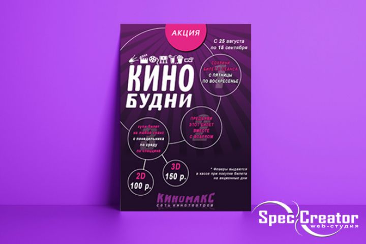 Дизайн флаера для сети кинотеатров "Кономакс".