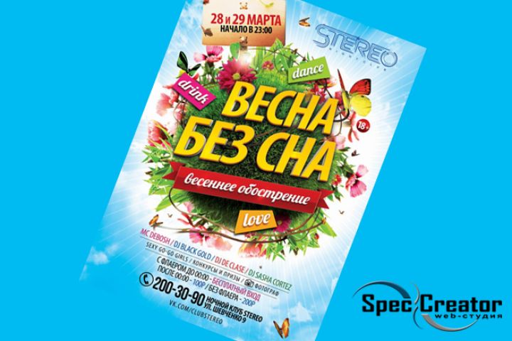 Дизайн афиши для ночного клуба "Stereo". Весна без сна.
