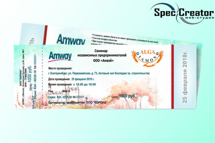 Дизайн входных билетов с перфорацией для компании "Amway".
