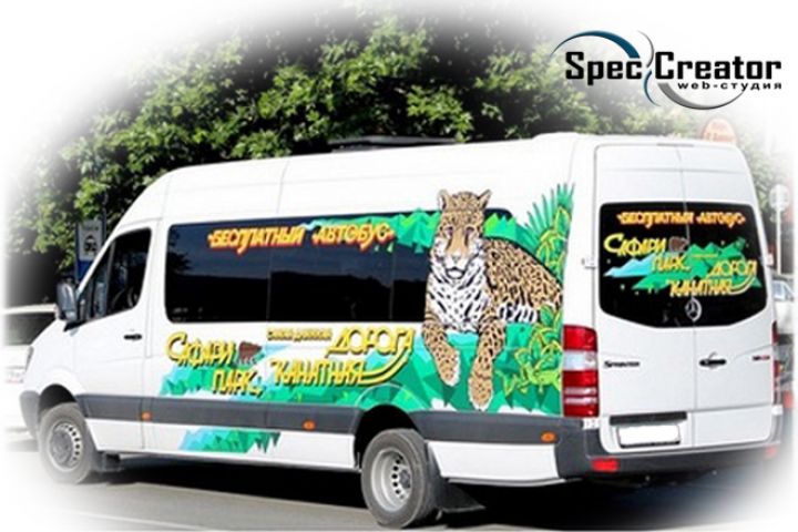 Брендинг авто для комплекса зоопарка "Сафари-парк". Бесплатный экспресс на канатную дорогу в Геленджике.