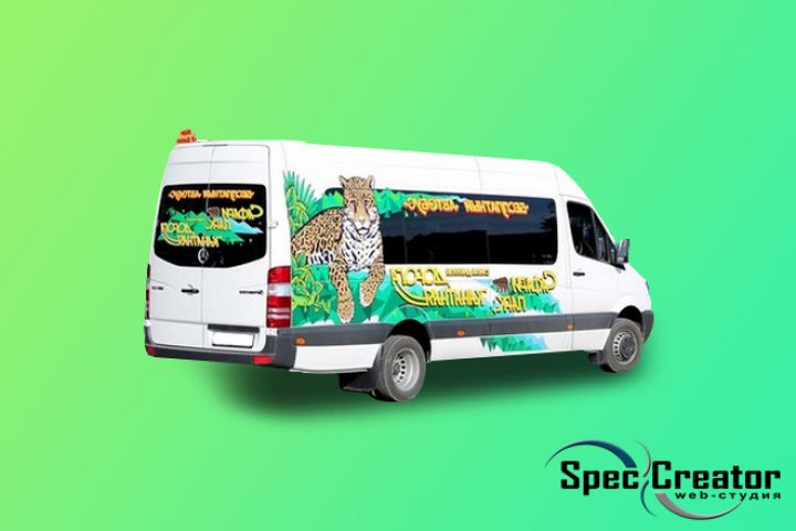 Брендинг авто для комплекса зоопарка "Сафари-парк". Бесплатный экспресс на канатную дорогу в Геленджике.