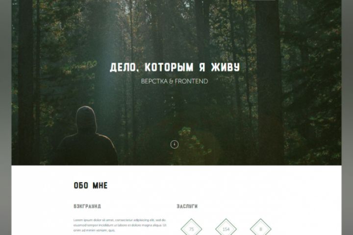 Верстка простого landingpage для разработчика (web, фотограф и т.д.) Выполнена адаптация.