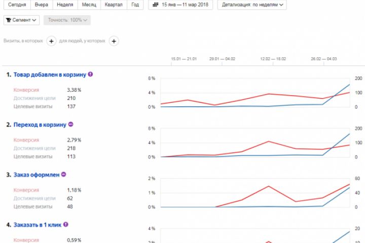 Рост посетителей на сайте винтажной продукции. Была проведена оптимизация посадочных страниц, расширен ассортимент и количество выводимых товаров в разделах, что привело к улучшению поведенческих факторов релевантных страниц и всего сайта в целом.