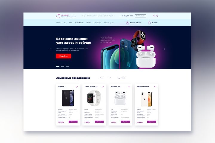 Дизайн главной страницы интернет-магазина по продаже гаджетов