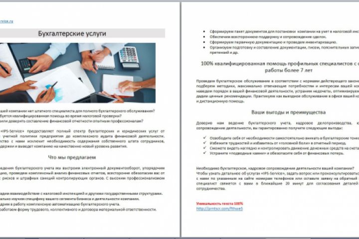 Продающий текст. Бухгалтерские услуги "IPS-Service"