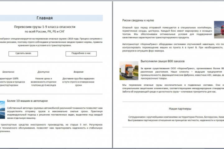 Главная страница. Грузоперевозки (отрывок)