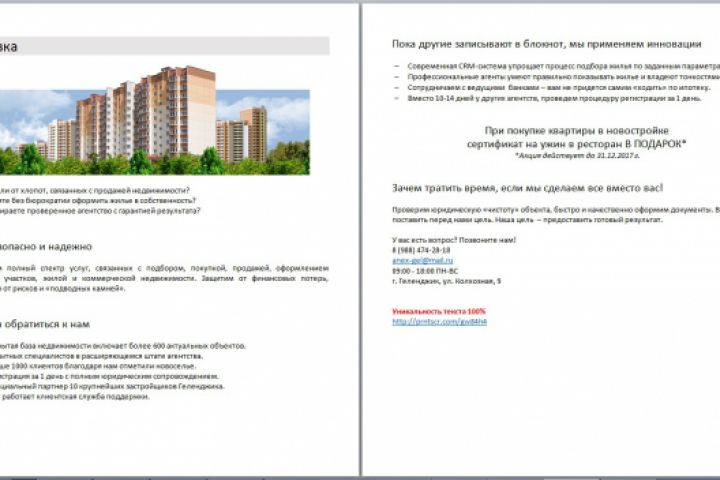 Продающая листовка для агентства недвижимости