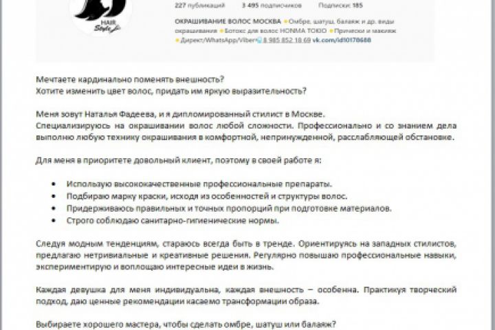 Продающий пост в Instagram о стилисте