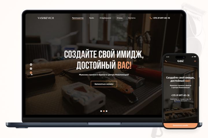 Дизайн сайта для барбера - "VASHKEVICH". С клиентом проработана стилистика проекта, согласованы все требуемые блоки, согласован и выполнен дизайн-проект лэндинга и его адаптация под мобильное устройство. Далее сайт был сверстан верстальщиком. Рабочая версия проекта по ссылке: one-barbershop.pro