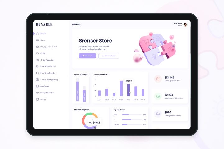 Дизайн dashboard для зарубежного сервиса "Buyable", упрощающей процесс покупок в сети. Клиент хотел обновить структуру и визуальную составляющую сервиса, сделать его воздушнее, лаконичнее, понятнее для клиентов.