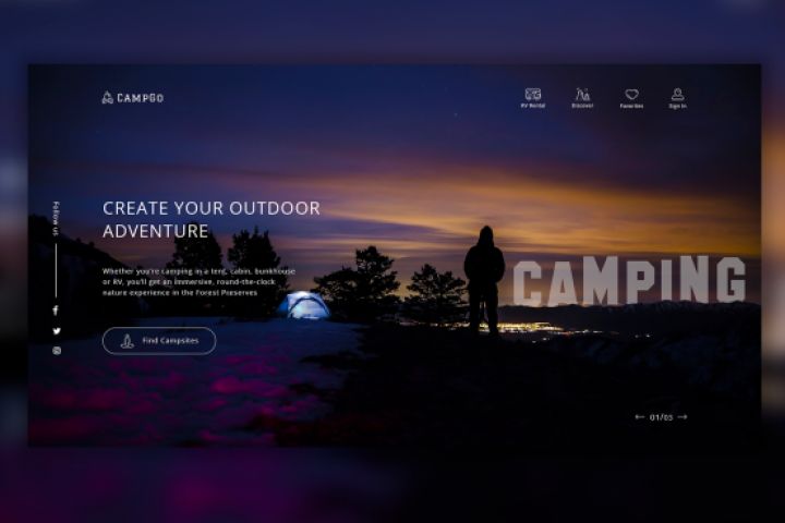 Первый экран туристической компании CapmGo. Так и хочется уехать с городской суеты :)
