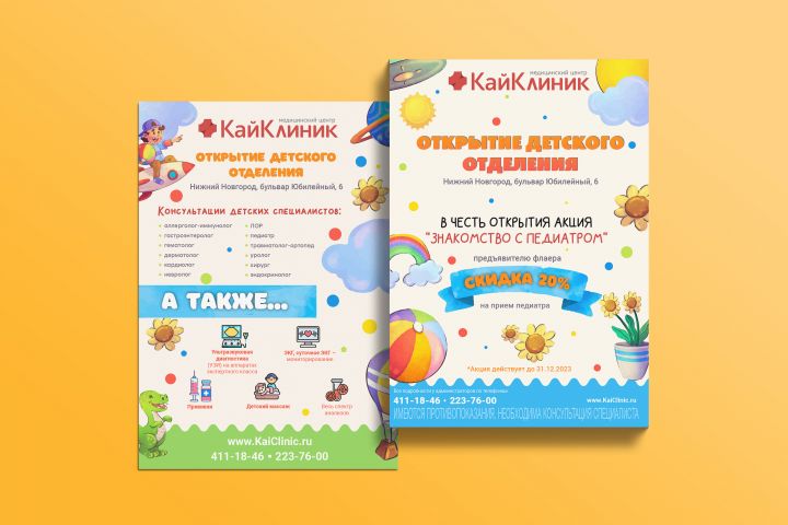 Листовка в честь открытия детского отделения клиники КайКлиник