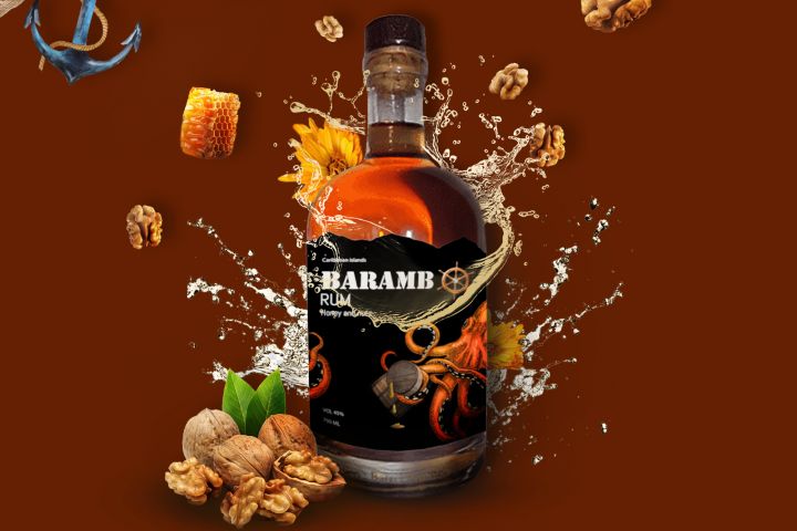Три баннера - три вкуса рома BARAMBO. Создавались с нуля ( логотип, подборка цвета, рисовка дополнительных элементов на этикетке)