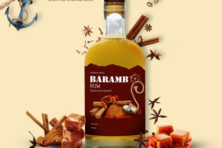 Три баннера - три вкуса рома BARAMBO. Создавались с нуля ( логотип, подборка цвета, рисовка дополнительных элементов на этикетке) В ссылке вы найдете еще баннеры на разную тематике.