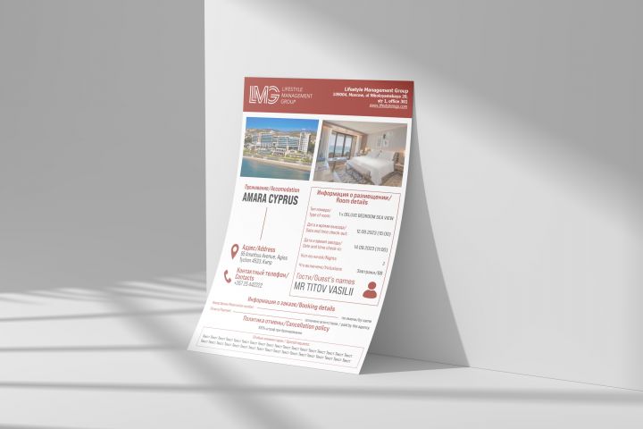 Дизайн информационного листа при регистрации в отеле
