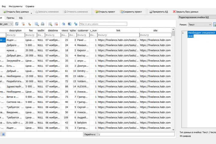 Программа выполняет сбор данных по всем фриланс-заказам с сайта «freelance.habr.com» и сохраняет собранные данные в базу SQLite.