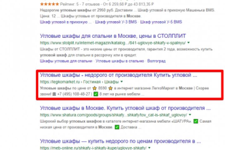 Москва - Топ 3 Google - Угловой шкаф