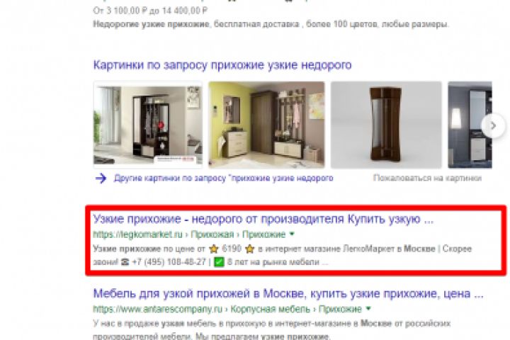 Москва - Топ 3 Google - Прихожие узкие недорого