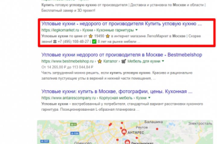 Москва - Топ 3 Google - Угловые кухни цена